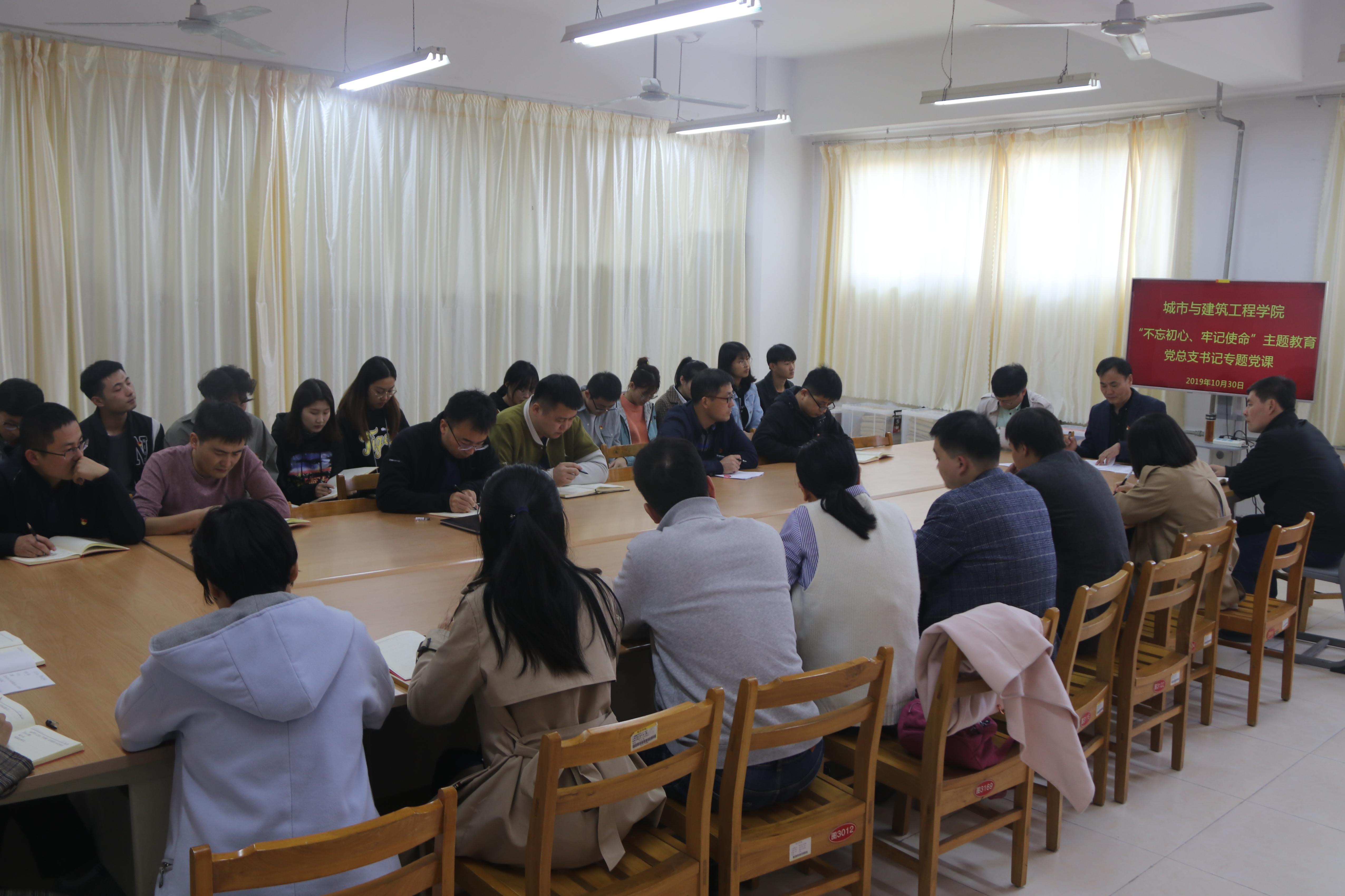 按照学校“不忘初心、牢记使命”主题教育工作安排与要求,10月30日下午,城建学院在理工楼2321资料室开展了“不忘初心,继续前进——加强课程思政改革,培养国家建设合格人才”主题教育专题党课。专题党课由学院党总支书记李振清主讲,党总支副书记徐海波主持。