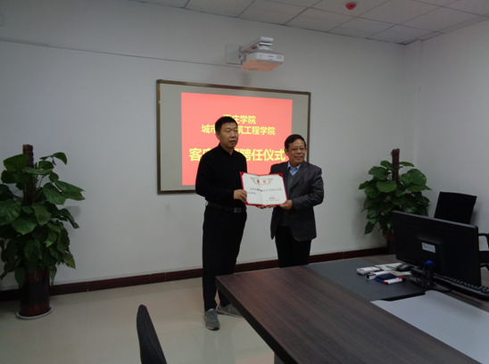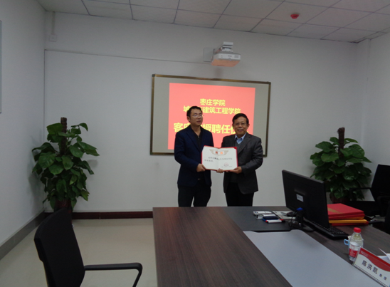 12月6日上午,kaiyun体育官网客座教授中科院水利部山地灾害与环境研究所博士生导师王全才教授、河北工业大学博士生导师黄达教授、河南省驻马店市公路局总工程师崔志波教授级高级工程师来校进行学术交流活动。校党委委员、副校长明清河教授为三位教授颁发了聘书。枣庄学院人事处处长孙晋选、城建学院党政领导及部分教师参加了此次活动,仪式由城建学院院长王满堂主持。