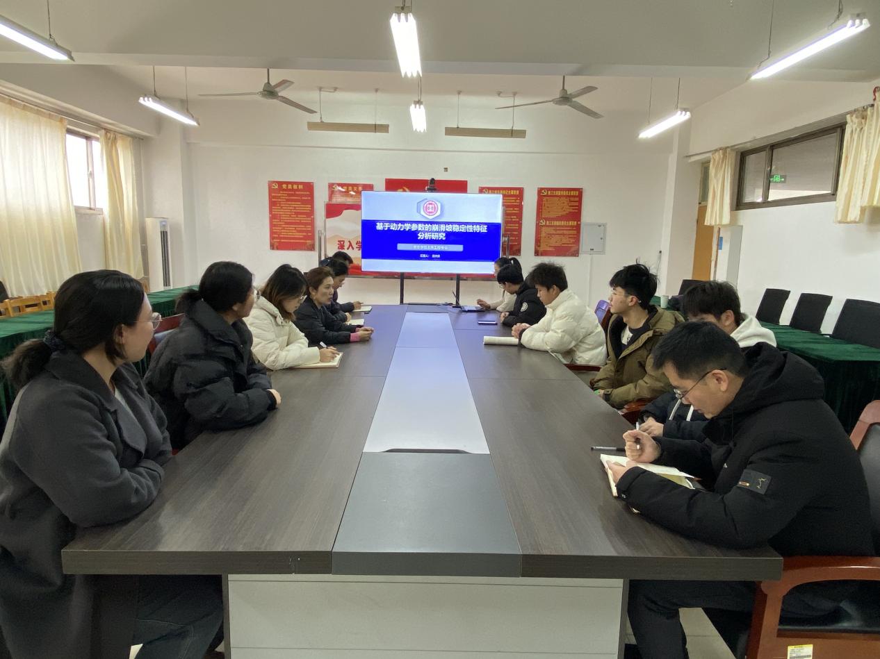 学院青年教师吕夫侠博士作了题为《基于动力学参数的崩滑坡稳定性特征分析研究》的专题报告。报告系统阐述了崩滑坡的动力学机理,重点介绍了崩滑启动过程中关键监测指标的确定方法与预警判识标准。通过模型试验,研究团队揭示了崩滑坡启动阶段的动力学特征,提出了基于动力学行为的前兆识别指标与判定标准,为崩滑坡的早期识别、动态监测、风险预警及危险区划分提供了新的研究思路与方法支撑。