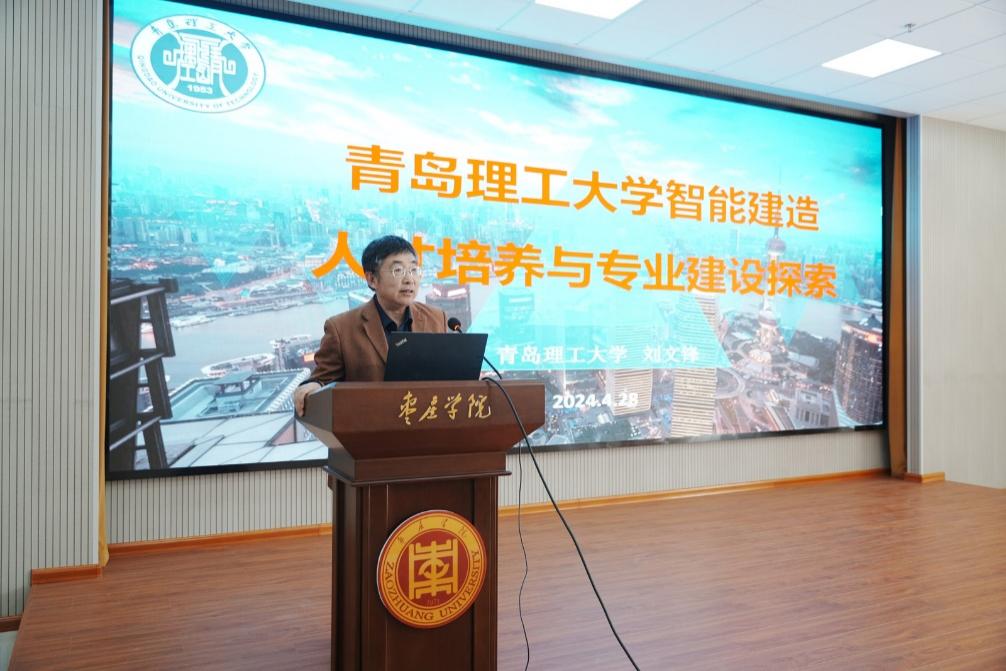 刘文锋教授以《青岛理工大学智能建造人才培养与专业建设探索》为题,介绍了青岛理工大学智能建造专业的培养模式,并从专业定位、培养方案、课程体系、师资队伍、实验室建设等方面详细阐述了智能建造专业的办学特色。