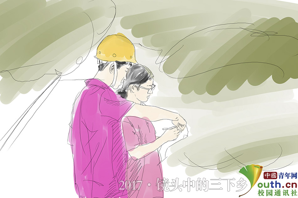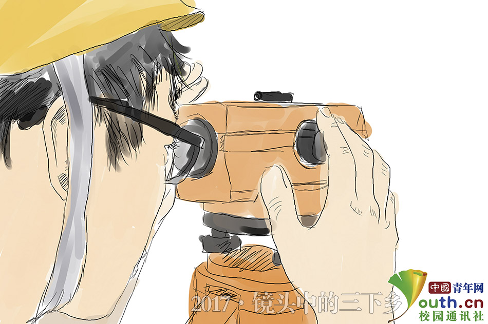 村中交通闭塞,志愿者们利用带来的仪器勘探路况,认真的调试着仪器,为村子里的道路重新进行规划做足准备。中国青年网通讯员 白昊旭 摄