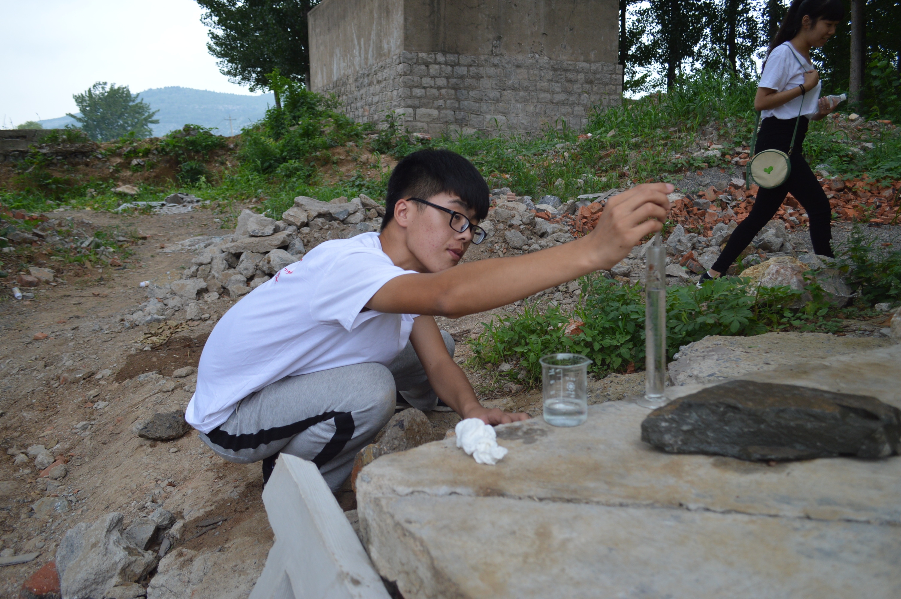 7月9日,同学们到达付庄村后首先对当地的水生态环境进行了细致的调查,采集了水样,对水质进行了分析。然后使用专业仪器进行实地测量,包括测量地面高差和绘制地形图等,全方位的获取地形数据并研究相应的办法。为了进一步的了解情况,同学们走访村民,询问用水等情况并积极宣传节水、保护水资源等方面的一些知识,从多方面解决用水困难等问题。