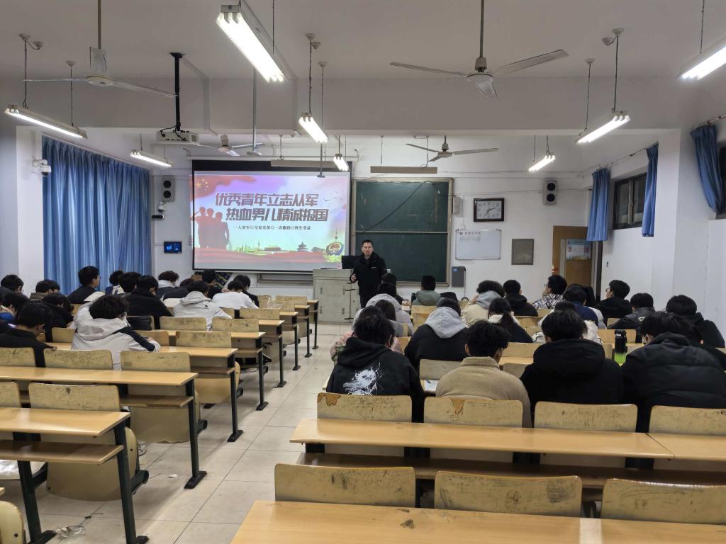 本次活动以国防教育为核心,通过播放国防建设纪实短片、解读国防政策法规、优秀退伍学长分享军旅经历等形式,全方位展现我国国防发展成就与军营风采,深刻阐释国防建设对国家发展、民族复兴的重要意义。退伍同学结合自身在部队的训练、生活经历,讲述了军旅生涯中守护家国的责任担当,分享了国防意识培养对个人成长的重要作用。现场还设置国防与征兵政策咨询环节,辅导员刘成河老师针对学生关心的入伍条件、优待政策及国防义务等问题进行详细解答,进一步强化学生国防观念。